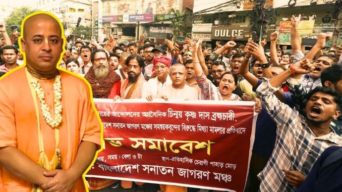 चिन्मय कृष्ण दास ब्रह्मचारी अधिकतर लोगों का अभिवादन इस तरह से करते हैं, "प्रभु प्रणाम", उनकी आवाज़ में एक सच्ची गर्मजोशी होती है। मिलनसार व्यक्तित्व के पीछे एक दृढ़ निश्चय छिपा था, जिसकी एक झलक दुनिया को मिली। मंगलवार को चटगाँव की एक अदालत से युवा बांग्लादेशी हिंदू नेता को ले जाते समय जेल वैन की खिड़की से एक संदेश आया। उसने विजय चिह्न दिखाया, विरोध में मुट्ठी बाँधी और फिर दोनों हाथों की उंगलियाँ बंद करके सनातनियों को संदेश दिया - एकजुट रहो।