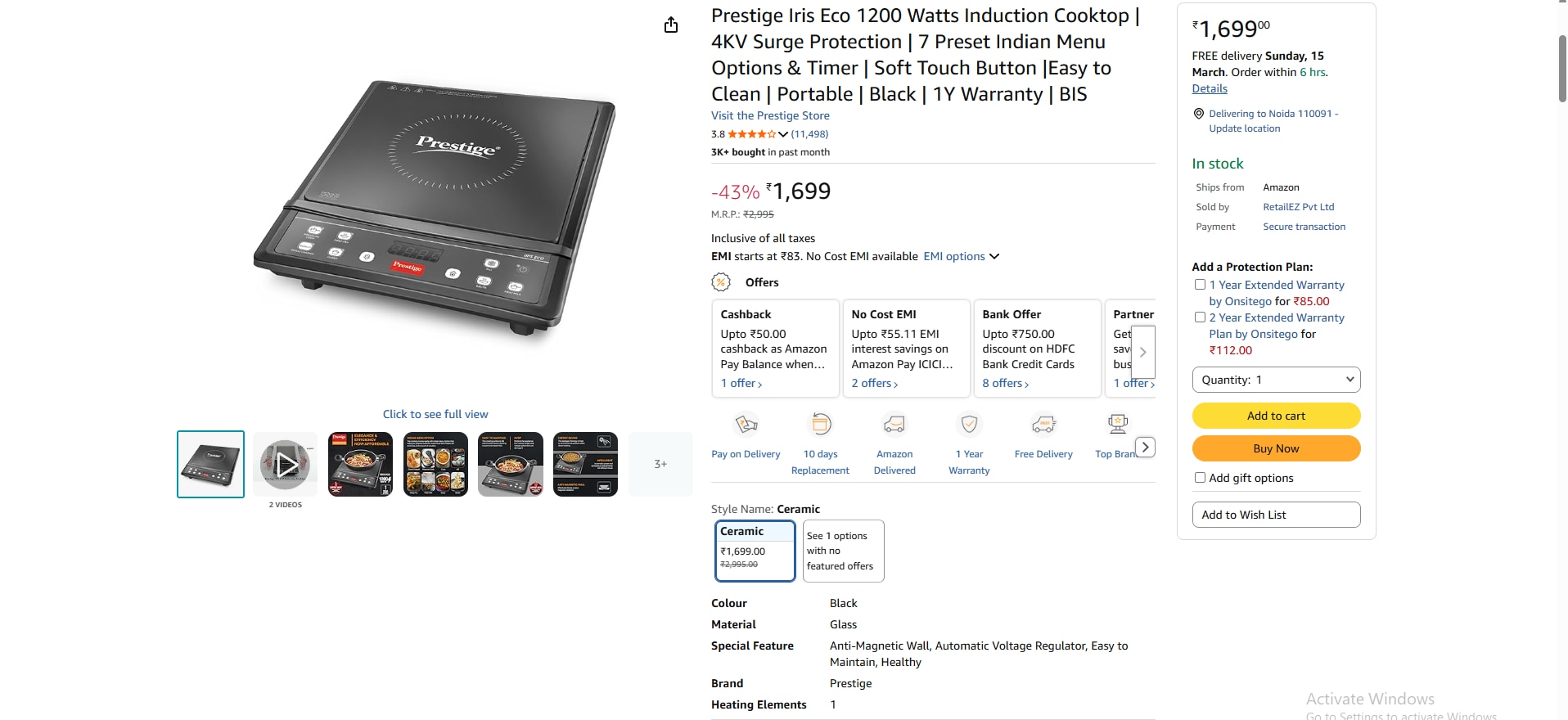 प्रेस्टीज का यह इंडक्शन कुकटॉप भारतीय रसोई के लिए खास तौर पर डिजाइन किया गया है। इसमें चपाती, इडली और डोसा जैसे कई इंडियन मेन्यू ऑप्शन दिए गए हैं। इसमें ऑटोमैटिक वोल्टेज रेगुलेटर, एंटी-मैग्नेटिक वॉल और कंप्यूटर कंट्रोल्ड सिस्टम जैसे फीचर्स मिलते हैं। इसका कुकिंग सरफेस फ्लैट और स्मूथ है, जिससे इसे साफ करना आसान होता है। यह ऊर्जा की बचत भी करता है और बिना आग के खाना पकाने की सुविधा देता है। अमेजन पर यह प्रोडक्ट आपको 1699 रुपये में मिल जाएगा।