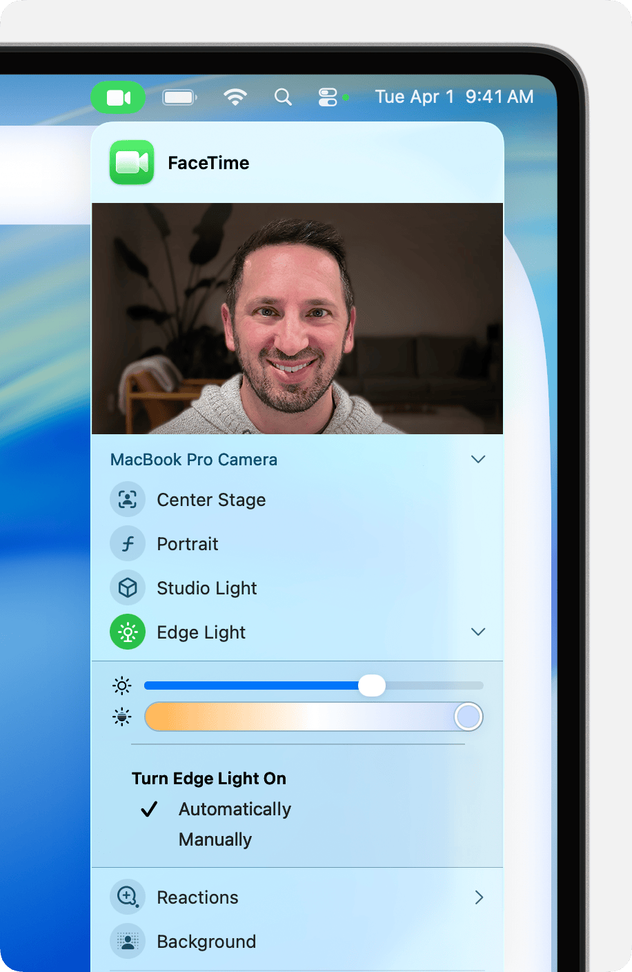 एज लाइट फीचर स्क्रीन के चारों तरफ एक चमकदार बॉर्डर बना देता है, जो चेहरे पर लाइट भरने (Fill Lighting) का काम करता है। एप्पल के सॉफ्टवेयर इंजीनियरों ने इसे काफी समझदारी से डिजाइन किया है। अगर यूजर काम के दौरान माउस कर्सर को स्क्रीन के किनारों पर ले जाता है, तो यह लाइट अपने आप पीछे हट जाती है ताकि स्क्रीन पर मौजूद कंटेंट को देखने में कोई रुकावट न आए।