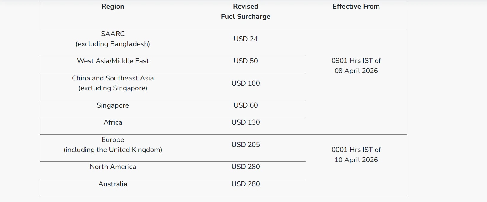 अंतरराष्ट्रीय उड़ानों के लिए स्थिति और महंगी है, क्योंकि वहां ATF कीमतों पर कोई कैप नहीं है। यूरोप जाने वाले यात्रियों को अब $205 प्रति सेक्टर अतिरिक्त देना होगा। वहीं नॉर्थ अमेरिका और ऑस्ट्रेलिया के लिए यह $280 तक पहुंच गया है। वेस्ट एशिया के लिए $50 और दक्षिण-पूर्व एशिया के लिए $100 का सरचार्ज तय किया गया है।