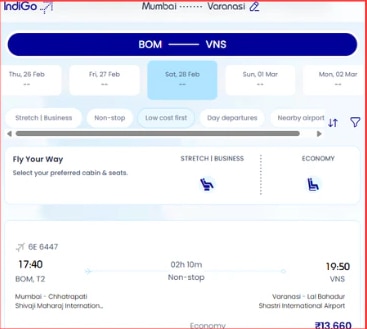 28 फरवरी को बुक की गई फ्लाइट इंडिगो की वेबसाइट पर करीब 13,000 रुपये बताई जा रही है।