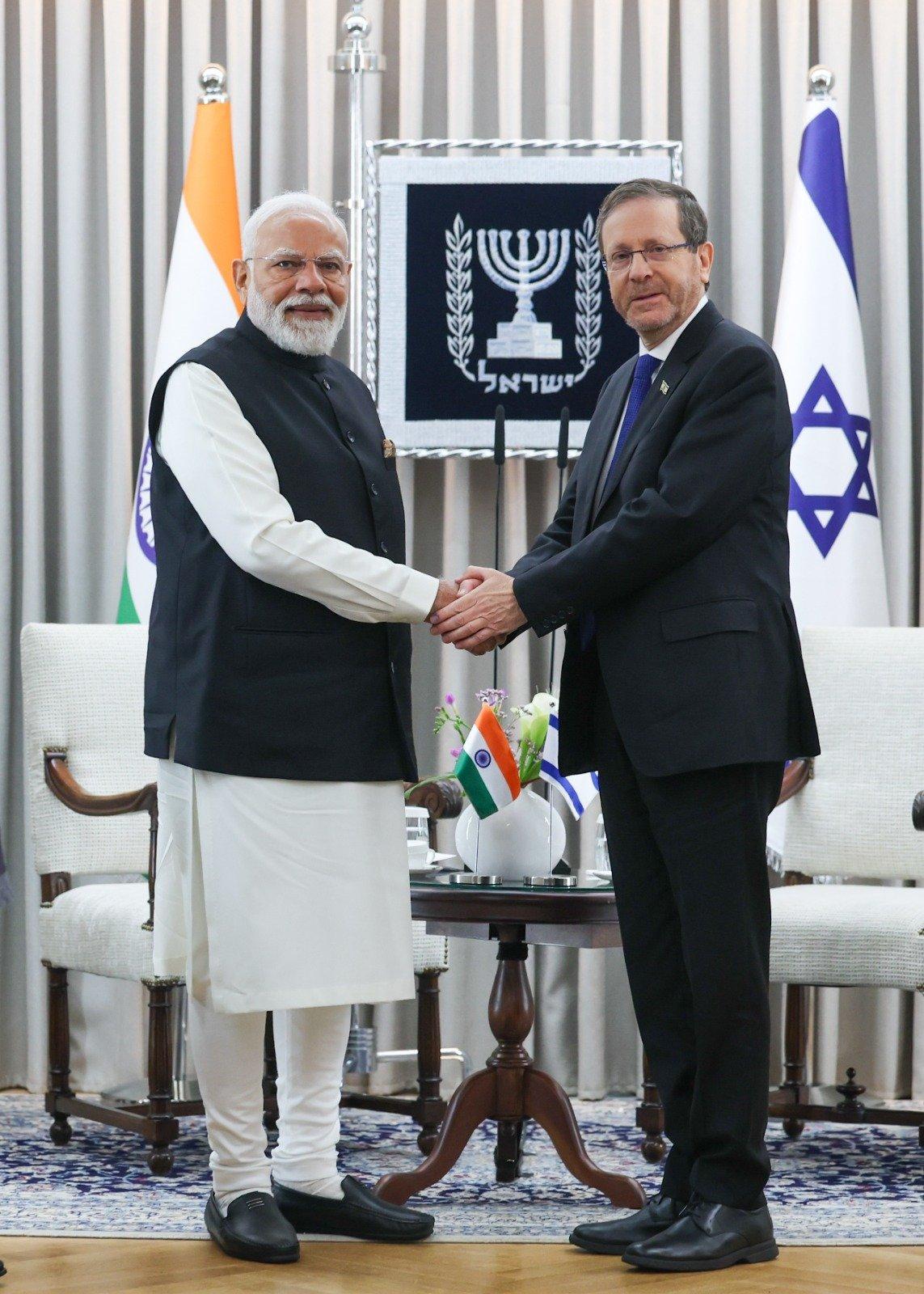 प्रधानमंत्री मोदी और इजरायल के राष्ट्रपति इसाक हर्जोग के बीच भी मुलाकात हुई। इजरायल के राष्ट्रपति ने भारतीय छात्रों को इजरायल में आकर पढ़ने का न्योता भी दिया और साथ ही इजरायली छात्रों से भी भारत जाकर वहां की यूनिवर्सिटीज में पढ़ने का आग्रह किया।